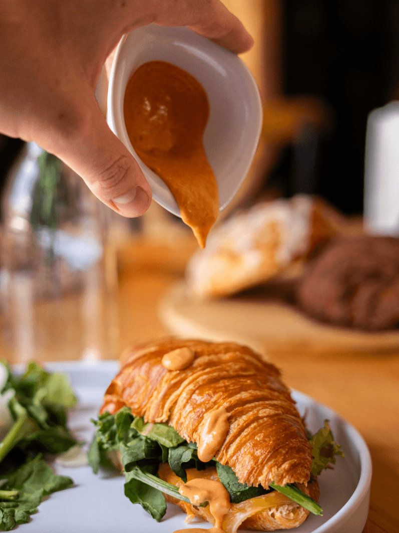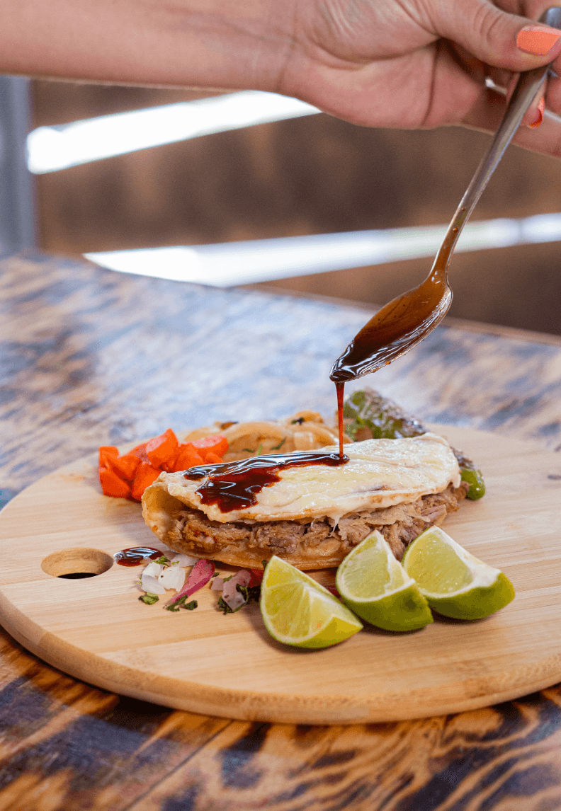 Filled with Cantina Chicken, Creamy Jalapeño Sauce and a 3-cheese blend, generously coated with a layer of grilled cheese on the outside and served with a vibrant Avocado Verde Salsa