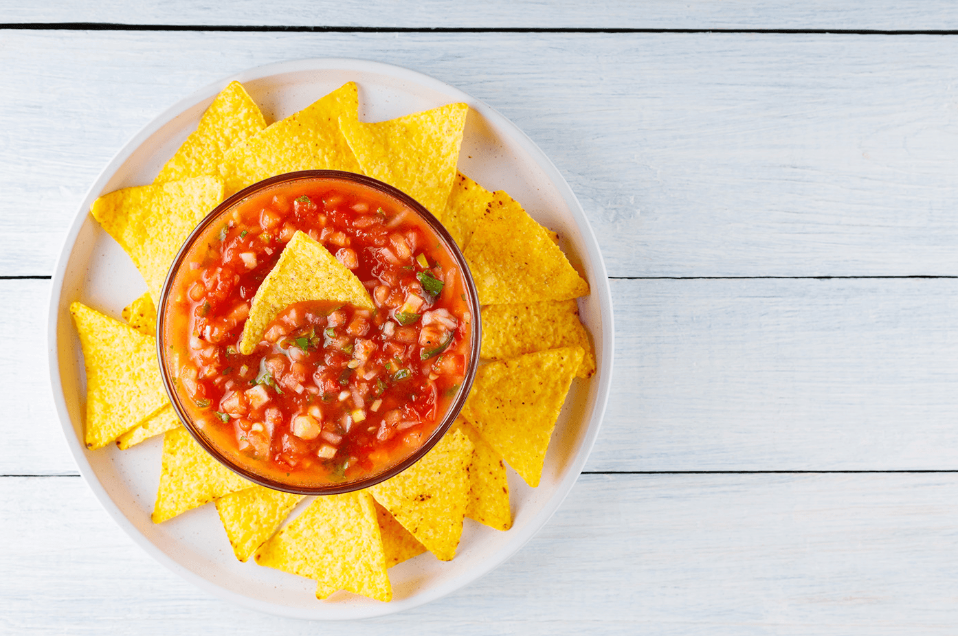 A favorite appetizer at many Mexican restaurants, this classic combo pairs freshly fried tortillas with simple and refreshing salsa.